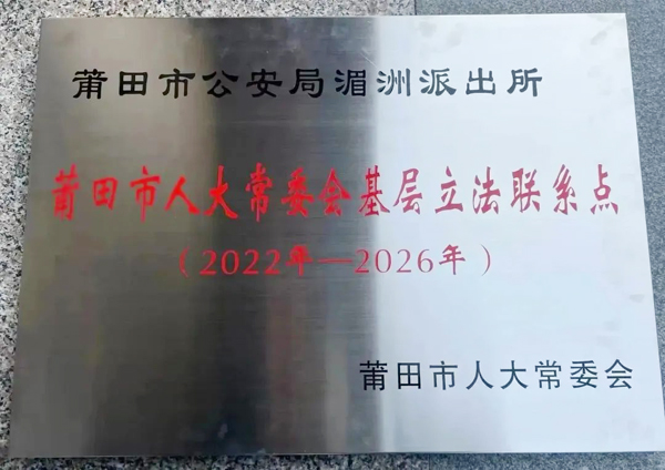 本报讯 10月18日,经莆田市人大常委会决定,湄洲派出所被确定为莆田市人大常委会基层立法联系点 ,为全市公安系统唯一一家入选单位。12月21日,市人大常委会为湄洲派出所等12家基层立法联系点举行了授牌仪式。