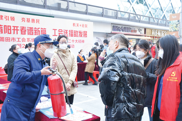 本报讯 为深入学习贯彻党的二十大精神,进一步夯实“党建引领、夯基惠民”行动,日前,涵江区消防救援大队联合多部门在涵江区涵东街道顶铺社区开展“机关+社区”共建迎新春主题活动,践行我为群众办实事、深化新时代文明实践,将温暖送到群众身边,提升全区“两节”消防安全氛围感。