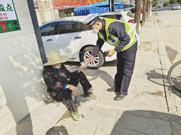 本报讯 日前,仙游县公安局交警大队鲤南中队民警暖心救助一位晕倒老人,获得老人家属的高度赞扬。