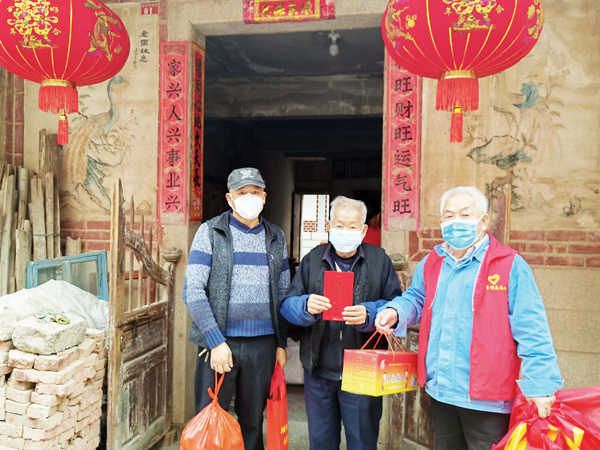 凝心聚力搭“侨”梁,文明实践树新风。11日,涵江区侨联主席林建辉、涵江区共青团书记黄滨、江口镇副镇长林明等对海星村74位留守老人和13户困难群众及现役军人家属进行春节慰问,为他们分发了长寿面、红福桔、春节慰问金,并与他们亲切交谈,了解他们的困难需求同时也向群众宣传“防重症、保健康”以及如何做好“安全健康第一责任人”的自我保护措施等,并为他们发放“防疫健康包”,增强他们战胜病毒的信心,也激起他们对国家、对社会、对未来感恩的心。本次活动共发放慰问金和礼品价值5万多元。