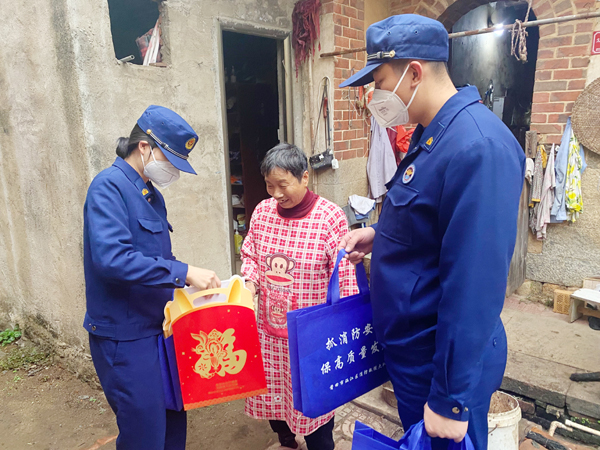 在城厢区龙桥社区、涵江区黄霞村、沁西村等地,消防宣传人员将“新春消防礼包”发放到居民手中,结合家庭火灾防控重点,就如何排查身边的火灾隐患、如何正确报警、面对自建房火灾该如何逃生等向群众进行讲解。同时,针对老、弱、病、残、幼及“空巢”老人开展“送温暖 送安全”一对一、手把手的宣传服务,对自建房出现的私拉乱接电线、堆放可燃物占用出口、对灭火器使用不熟悉等问题做了详细的解答,帮助群众一处一处地消除了可能存在的火灾隐患,防止了火灾事故的发生。
