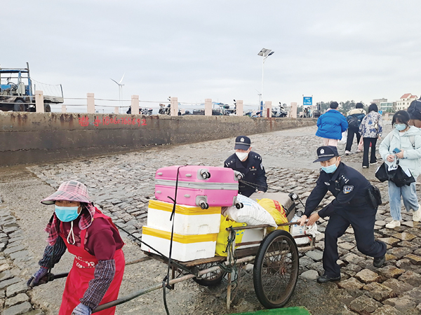 本报讯 春运期间,为了确保石城轮渡码头航线客轮和游客的安全,埭头派出所每天都安排民警到轮渡码头、客轮上执勤。民警通过分发宣传单、现场解答等方式,向客轮工作人员和乘客宣讲安全知识,并对轮渡的重点场所和过往旅客携带物品进行安全检查,排除安全隐患。执勤过程中,民警克服大雾、低温及雨水天气等带来的不良影响,始终坚守岗位,主动帮助游客提行李、搬运货物,扶老携幼等,为乘客、车辆安全过渡提供引导服务,全力保障轮渡码头公共场所的治安秩序,为乘客营造安全、舒适的环境。(时报记者 林锦堂 通讯员 郑晓仙)
