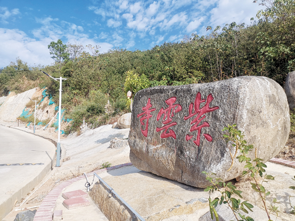 经过紫云寺,我提议下车顺道参观下。美景在路上,遇见就是缘分。紫云寺路口,有一处明代砖瓦窑遗址。紫云寺貌似不古老,但寺前布置了花草、盆栽,还有可以休闲的木亭子,特别是刻着字的巨石,沿着通往寺门道路两侧布置,特别引人注目。这寺的打理人是个有心人。