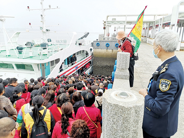本报讯 2月12日,莆田忠湄轮渡迎来规模最大进香团队,人数达7300人,由于短时间进岛人数较多,为保障大型进香团队安全有序进出岛,莆田海事局湄洲岛海事处积极采取措施,强化现场值守,全力以赴保障香客渡运安全。