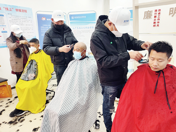 “大爷想剪什么样的发型?”“要长一点还是短一点的?”在宫下村“党建+”邻里中心里,理发师们耐心地询问老人们的需求,按照他们的要求为他们修剪发型,活动期间共为30余名村民免费理发。