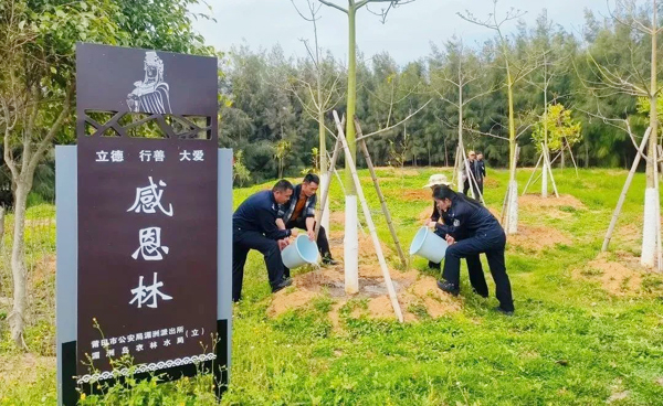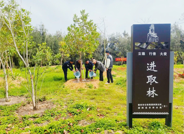 不仅有“感恩林”,还有“进取林”。“进取林”则是湄洲派出所深入践行“以人民为中心”执法理念的又一创新。去年以来,湄洲派出所将执行轻微行政违法行为“首违免罚”,作为深入开展“我为群众办实事”实践活动的有力举措,通过“首违免罚”“一日交通志愿者”、共同种植“进取林”等活动,将执法管理与为民服务有机结合,让执法更有温度,让公安工作得到更多群众的理解和支持。