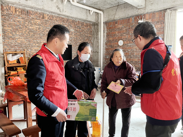 活动当天,党员志愿者们带着准备好的慰问物资、慰问金对留守老人们进行慰问,对老人们嘘寒问暖,陪老人们聊天谈心,了解老人们平时的身体状况和饮食情况,叮嘱老人要注意保暖、留意身体,为他们科普健康知识,并送上美好的祝福,将党组织的关怀及志愿者的温暖送到老人们心坎里。