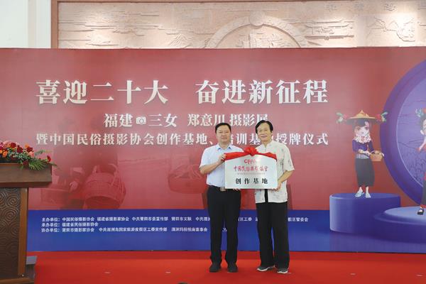 第十四届海峡论坛·妈祖文化活动周的配套活动项目《喜迎二十大 奋进新征程——福建“三女”郑意川摄影展》暨中国民俗摄影协会创作基地、培训基地授牌仪式于7月11日在湄洲岛开幕。