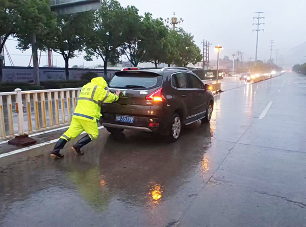 民警叮嘱司机雨天要注意行车安全,车主连连称谢:幸好民警及时帮忙,冒着雨救了急,真是十分感谢!人员。民警让司机在驾驶座控制方向盘,自己在后方冒雨徒手推动小车,几分钟后小车被顺利推至路边。经过民警的及时处置,道路交通迅速恢复了正常运转。