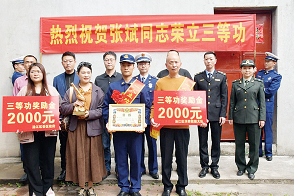 本报讯 为切实增强消防救援指战员职业荣誉感、使命感,营造尊崇消防救援职业的社会氛围,进一步立起崇尚荣誉、创先争优的鲜明导向,近日,涵江区消防救援大队联合区应急管理局、退役军人事务局、武装部、梧塘镇及村(居)相关领导共30余人为2022年度获得个人三等功的同志开展“送奖到家”活动。