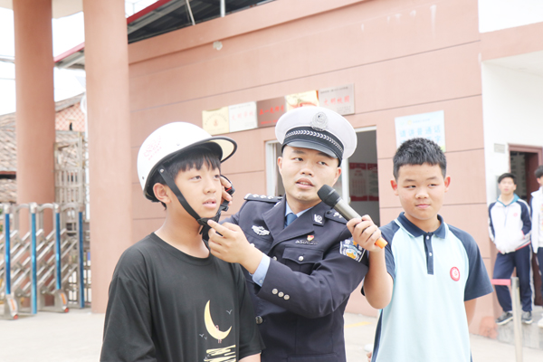 为进一步提升电动自行车骑乘人员的安全防护水平,提高安全头盔佩戴率,近日,仙游县公安局交警大队度尾中队负责人连锦南带领宣传小分队走进三会中学开展“骑行安全”宣传进校园活动。