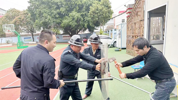 进校园开展演练和普法。紧紧国绕交通安全、防火防盗、禁毒、反邪教、反电诈等法律知识,用道俗易懂的语言向不同年龄学生进行普法宣传,进一步增强在校师生的自我保护意识和法律意识;随后采取现场演示、实际操作等方式,与学校安保人员、教职工、学生共同开展消防安全及反恐防暴演练,提升学校师生及安保人员对突发事件的应急反应和处置能力,筑牢校园安全屏障。(蔡琦琳)