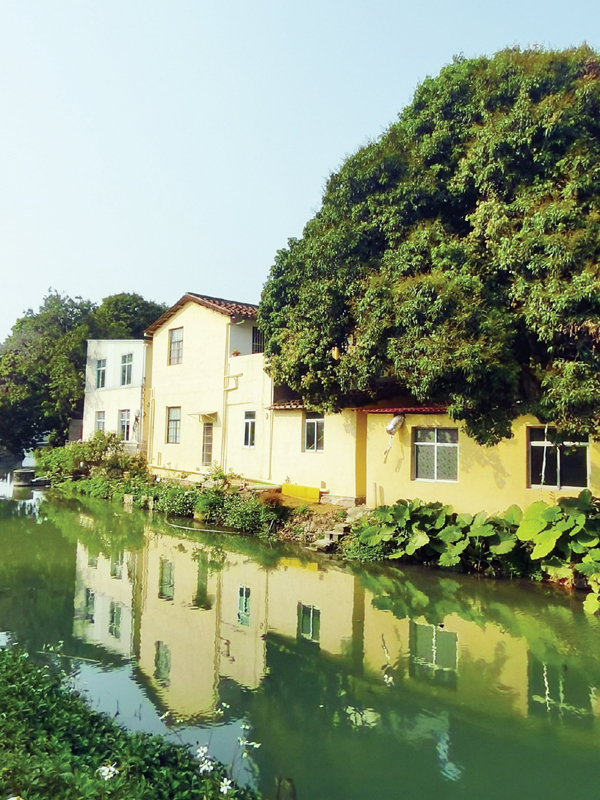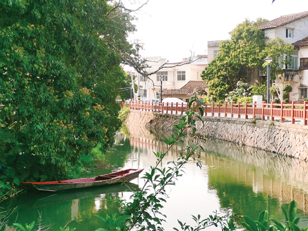 屋前碧水涟涟,流水潺潺;屋后荔林叠翠,果蔬葱茏。在荔枝林间行走,随处可见由翡翠般的绿水、郁郁葱葱的荔枝树、古朴的红砖白墙组合的图案,老人们在荔枝树下的休闲广场,或锻炼,或聊天,一片祥和。这里的荔林、农田、荷塘,这里的小桥、流水、人家,总有一种温婉质朴的美感,又有一种甜蜜的温情伴随着你或骑车或步行的运动轨迹,去叩开这个江南水乡的心扉。当然,现在来吴江村还有另外一种途径,如果你选择“水上巴士”游玩,你将掀开吴江村另外一个版本的扉页:吴江村是“水上巴士”沿途的节点村之一,在游船的移步换景中,细细领略绿柳依依的傍水人家、水波漾漾的小桥斜影。那美翻的水道,还有城涵河道园林景观及防洪工程绿道,像两条色彩斑斓的彩带在延伸、伸展,依次铺卧在你的视野内!随着毗邻的北大村陈紫桥的建成,经过综合提升治理的城涵河道,把上游的绶溪公园,沿企溪将下游的白塘公园串联,“水上巴士”把镶嵌于“城市绿心”北洋片区中的名村比如吴江、北大等组团串联一体。吴江村在前行中思考着升华着,保留着荔林水乡的文化记忆,延续着荔林水乡的历史文脉,激发着荔林水乡的内生动力。
