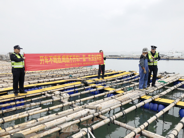 本报讯 为严厉整治酒醉驾、一盔一带等行为,防范交通事故的发生,全力维护海岛人民群众的生命和财产安全,近日,南日派出所组织民警走进渔排、渔船等向渔船民讲解酒醉驾、一盔一带危害,全力做好预防酒驾醉驾、一盔一带的源头管理工作。期间,该所民警向渔船民分析了酒醉驾、一盔一带违法犯罪行为的危害性,要求渔船民严格遵守交通安全有关法律法规,全力预防酒醉驾、一盔一带违法犯罪行为的发生,切实提升海岛渔船民酒醉驾、一盔一带的交通安全意识,共同维护辖区道路安全、有序、畅通。(刘晓冬)