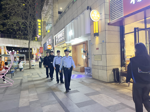 巡查中,执勤民警结合辖区实际情况,以提升平安“三率”为着力点,科学统筹巡防警力,加大巡防力度,通过车巡和步巡相结合的方式,加强对辖区商场、古街、公园等治安复杂部位和夜间人员密集场所的巡逻,及时消除各类风险隐患,切实提升见警率、管事率,确保快速反应、高效处置,营造安全稳定的社会治安环境。同时,民警积极向群众进行禁毒、反诈等各类安全知识宣传,切实提高群众防范意识与能力。
