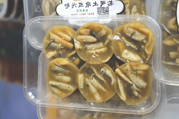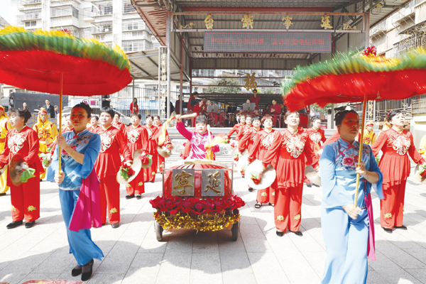在萝苜田历史文化街区里,记者见到了涵江区的众多非遗项目,如涵江车鼓、错金银技艺、宝元福记燕皮制作技艺等。