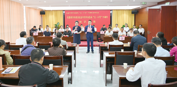 举办纪念中共中央发布“五一口号”75周年知识竞赛活动,全程开放直播通道。全市盟员共同收听收看直播,参与庆祝活动。民盟省委会政策研究室二级调研员鄢晨枫受邀出席活动。