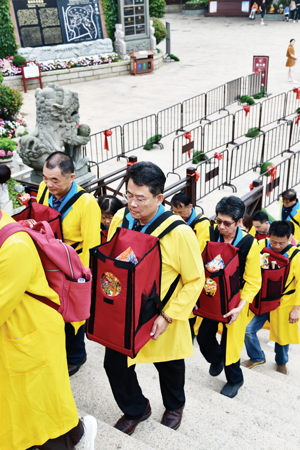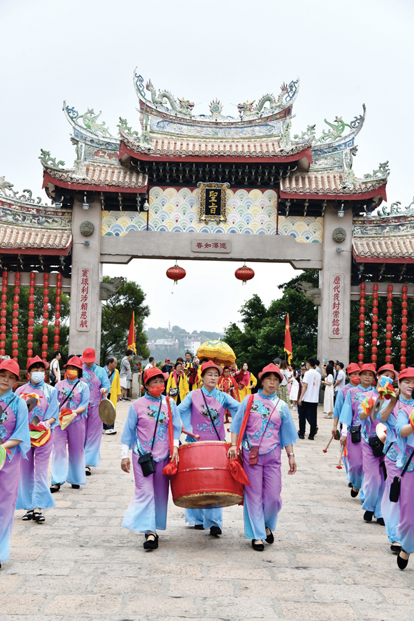 台湾彰化西台玉世宫、西台朝天宫主任委员洪胜和也在当天率20多位台湾妈祖敬仰者恭请分灵妈祖赴湄洲妈祖祖庙谒祖进香。(时报记者 翁志鹏 通讯员 周建国)
