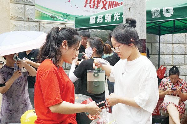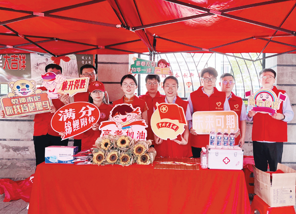 “祝莘莘学子旗开得胜,金榜题名!”“激情圆梦想,拼搏铸辉煌!”……考场外,一条条醒目的横幅,一顶顶遮阳的帐篷,温馨助力高考。伴随着陆续到场的考生和送考家长的增多,各爱心志愿服务站点也忙碌了起来,热心的志愿者们为考生和家长们发放矿泉水,在炎热的夏日里送上轻便的扇子,提供各项暖心服务,受到在场考生家长的欢迎和好评。