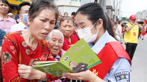 本报讯 为进一步提高广大群众对毒品的认识和抵制毒品的能力,5月17日下午,黄石镇举办“黄石巡游非遗 传承禁毒文化”主题宣传活动,黄石派出所利用“巡游”契机在巡游安保街区开展“弘扬传统文化 传播禁毒理念”宣传活动。期间,民警通过悬挂横幅、发放禁毒宣传图册等方式,向现场群众介绍禁毒知识和相关法律法规,详细科普了毒品的传播特点和对于个人、家庭的危害等,让群众充分了解毒品的巨大危害性,坚决抵制毒品,形成良好的社会氛围。(欧倩)