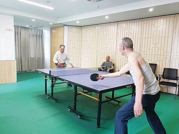 图为老人在乒乓球室打乒乓球。刘锶佳/摄