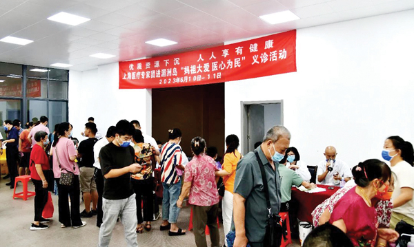 活动现场,来自上海复旦大学附属肿瘤医院、上海复旦大学附属华山医院等多家医院的12名医疗专家开展义诊,为前来问诊的岛民与岛外群众认真评估病情、制定诊疗方案。