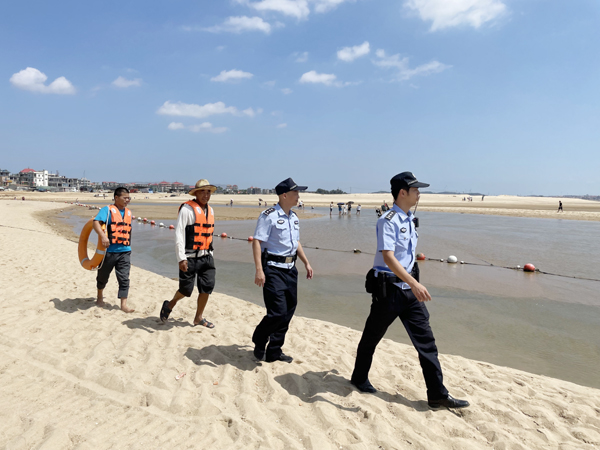 据悉,平海镇“黄金沙滩”并非旅游景点,安全基础设施并不齐全。为此,平海派出所通过增设安全标语、横幅、路标提醒游客提高防范意识,配备救生衣、救生圈等安全防护器材提高防护能力,并通过与义务救援队协作,加强沙滩安全巡查,对游客涉险行为及时提醒制止,不断完善“人防、物防、技防”措施。同时,该所还充分利用网红打卡点人员密集、流动性大的特点,将警力下沉一线,与游客面对面开展安全防范宣传,结合历年溺水事件向游客历数可能危及自身安全的危险行为,确保游客将安全意识入脑入心,提升自身防护能力。(陈玄展)