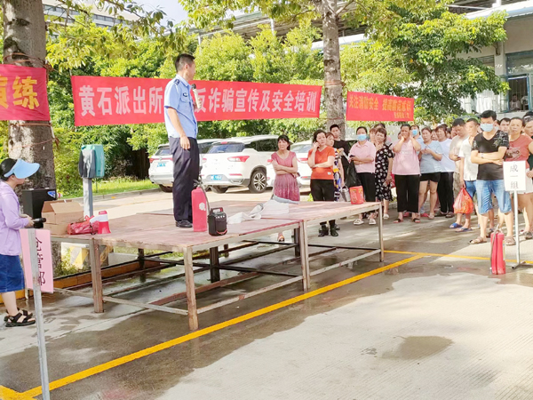 本报讯 为切实保障人民群众生命财产安全,有效预防消防安全事故发生、营造全民反诈浓厚宣传氛围,7月4日上午,黄石派出所深入辖区企业开展反诈宣传及消防安全培训。
