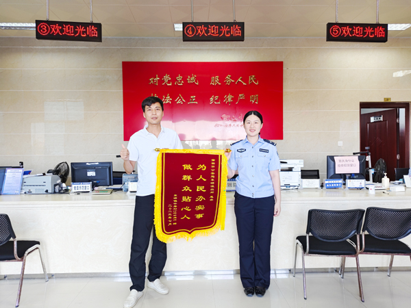7月16日,东峤镇许厝村村民许某兴专程来到东峤派出所将一面印有“为人民办实事、做群众贴心人”的锦旗送到民警手中,点赞民警不辞辛劳、为民解忧的优良作风。