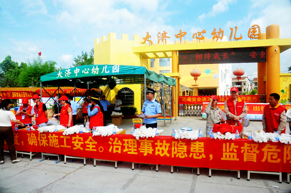 6月20日上午,大济镇党委政府在大济中心幼儿园门口开展“安全生产月”宣传活动,党委副书记方晓琳、政法委员卢志斌、司法所所长李凡出席了活动。应急办、综治办、道安办、派出所、司法所、消防办、各村安全协管员、网格员、各企业负责人等多部门联合举办了第二十二个安全生产月大型宣传活动。