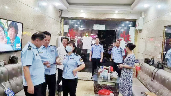 本报讯 为深入推进夏季治安打击整治专项行动,进一步治理辖区夜间噪音污染问题,为辖区居民营造良好的生活和工作环境。8月6日晚,黄石派出所联合区执法局、镇文化站深入辖区开展噪音扰民整治行动。