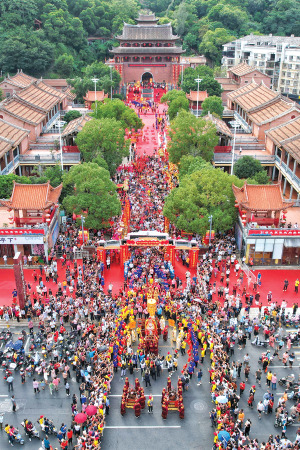 此次“瓣香湄洲·福佑兴化”——2023年海峡两岸同胞护驾湄洲妈祖金身巡安莆田活动,不仅在全市再掀妈祖“热”高潮,也吸引了来自河北、山东、云南以及省内的厦门、宁德等省市游客、妈祖敬仰者特地前来观看。“我们是通过媒体上的消息得知妈祖金身巡安莆田活动的,特地带着亲友从老家赶过来观看,场面太震撼了,这是我们以前从来没有见过的,这次能够在现场观看与感受,让我们对妈祖文化和精神有了更新、更深入的了解与认识,真的不虚此行,回去后,我会将这次的感受告诉身边更多的亲友,让他们有机会也能够来到妈祖故乡感受妈祖文化。”在活动现场,来自山东青岛的游客季先生告诉记者。 (时报记者 翁志鹏/文 陈晓威/图)