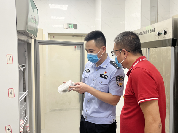 检查中,民警主要以学校食堂及周边的商超、餐饮为重点区域,采取“看、问、查”的方式,重点检查了食品加工制作环境、食品加工存储条件、食品进货渠道、餐具清洗消毒、从业人员健康管理等相关情况,仔细察看食品储存与留样、食品加工制作及索证索票等是否符合规范要求;同时,向食堂从业人员及沿街商铺、小吃餐饮店等相关人员宣传了《中华人民共和国食品安全法》和《中华人民共和国刑法》中涉及食品安全的法律法规,督促校方要切实担负起食品安全主体责任,健全学校食品安全风险防控制度,严格落实进货查验要求,严防假冒伪劣、有毒有害、过期变质和“三无”食品流入校园。