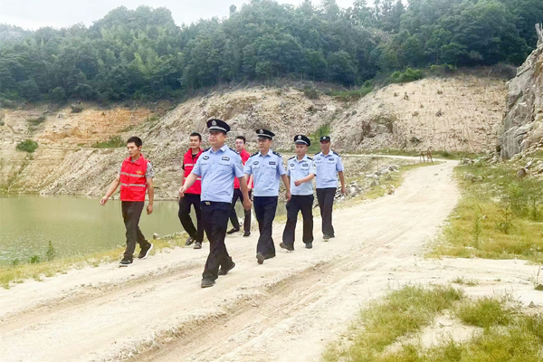 时值仲夏,尽管天气炎热,一支由石苍派出所民警、水库管理工作人员以及附近村民组成的巡山护水队,正在水库周边开展日常巡查工作,他们目光坚毅、脚步笃定。