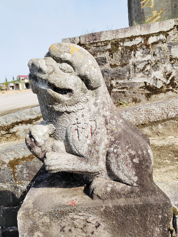 卓迈墓旁尚存的石马,呈直立状,其身躯壮实,眼睛有神,略低看前方,马鞍雕刻如真,马鞍下左右两侧的“障泥”浮雕崇山和如意卷云纹,镫及镫带雕刻线条流畅有力,不失为石雕艺术精品。