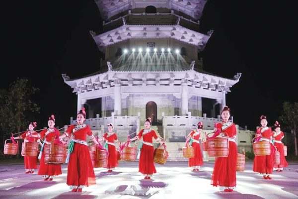 演出现场,演员们随着音乐节拍、光速变幻,迈着整齐的舞步,或跃起,或蹁跹。俚歌说唱乡情满溢,情歌对唱情义纯真,表演精彩纷呈,引得围观游人阵阵欢呼、争相拍照。