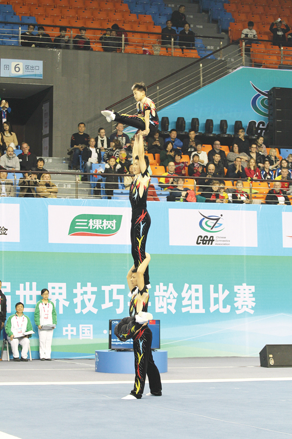 我虽然观赛不多,但每次到比赛场馆检查、研究工作或颁奖前的等候时间,都会去大厅看一会儿比赛,过过瘾。当运动员最后一个动作摆姿落定,全场观众总是报以热烈的掌声,尤其是中国队运动员上场和精彩表演后,掌声、加油声格外响亮。最难忘的是闭幕式前的最后一场男子4人技巧决赛,中国小将以惊险默契的抛接、灵活轻盈的翻腾、舒展有力的组合动作震撼了评委和全场观众。当宣布中国队获得冠军时,全场观众自发起立,雷鸣般的掌声、欢呼声像要掀起体育馆屋盖。当雄壮的《义勇军进行曲》响起,所有人站立,目视着五星红旗缓缓升起,放声唱响中华人民共和国国歌。那一刻,令人热血沸腾,中华民族的自豪感油然而生,充分展现了莆田人民的爱国热情!