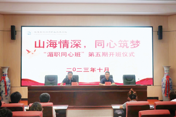 本报讯 10月11日,“湄职同心班”第五期开班仪式在福建省湄洲湾职业技术学校举行。福建省湄洲湾职业技术学校党政办公室主任黄亦欣、宁夏同心职业技术学校副校长李国,“湄职同心班”36名师生以及学校选派的指导教师共同参加本次开班仪式。