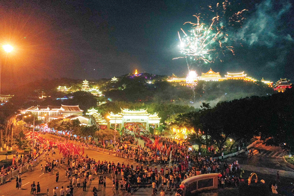 18时56分,妈祖金身回銮湄洲妈祖祖庙天后宫,瑞钟祥鼓,肃雍和鸣,湄洲妈祖祖庙董事会董事长林金赞携妈祖文化敬仰者行三献礼仪式。妈祖金身安座礼成后,举行大型烟花秀表演,绚丽多彩的烟花,把祖庙建筑群映衬得如梦如幻,也为此次妈祖金身巡安莆田活动画上圆满的句号。