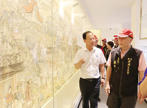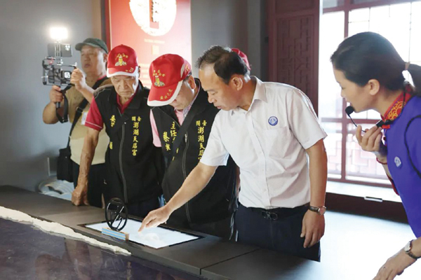 湄洲妈祖祖庙董事会董事长林金赞对台湾澎湖天后宫主委蔡光明一行的到来表示热烈欢迎,并陪同进香团向妈祖行庄严的三献礼。随后,林金赞与蔡光明等人在祖庙思懿亭举行座谈会,同话妈祖、畅叙情谊。