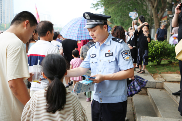连日来,在仙游县九鲤湖景区,公安民警手持反诈宣传单,忙碌穿梭于人群之中。伴着流水潺潺,反诈顺口溜声声入耳,提醒游客警惕优惠购票、平台退赔等诈骗类型。