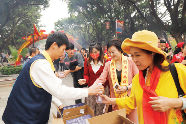 在妈祖金身绕境巡安布福期间,爱心商家、岛民纷纷在沿途设立爱心驿站,为巡安人员送上矿泉水、水果等。