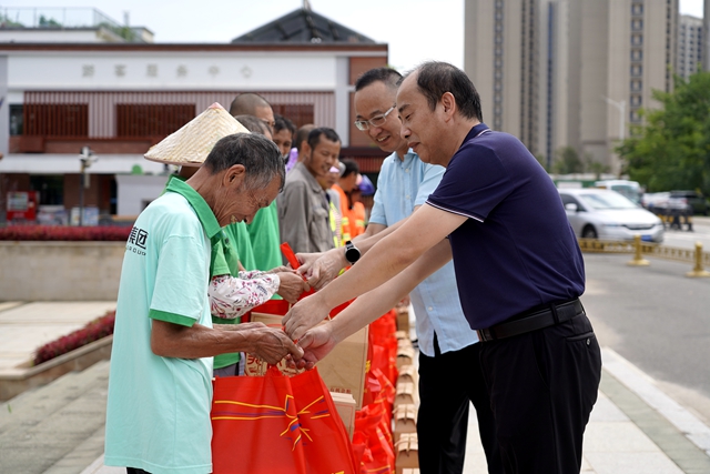 8月22日上午,市住建局党组成员、系统党委专职副书记潘建平,市建设系统工会副主席、市住建局机关工会主席黄群英一行来到绶溪公园园林绿化现场,亲切慰问了在高温下辛勤工作的一线人员,并给大家送来了防暑降温用品。市园林绿化中心四级调研员、园林集团董事会召集人许建泉陪同慰问。