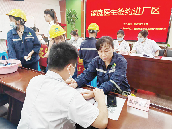 秀屿区东庄镇辖区内有莆田市圣元环保电力有限公司、福建永荣科技有限公司、鞍钢冷轧钢板(莆田)有限公司等多家企业,大部分职工长期居住在厂区。结合工作实际情况,东庄镇卫生院组建了一支专门服务于周边厂区的“特殊”签约服务团队,将家庭医生签约服务覆盖到厂区,力争打造厂区特色的健康管理服务模式,让厂区职工切实享受到家庭医生提供的便捷、高效、优质、可靠的健康管理服务,保障从业人员身心健康。
