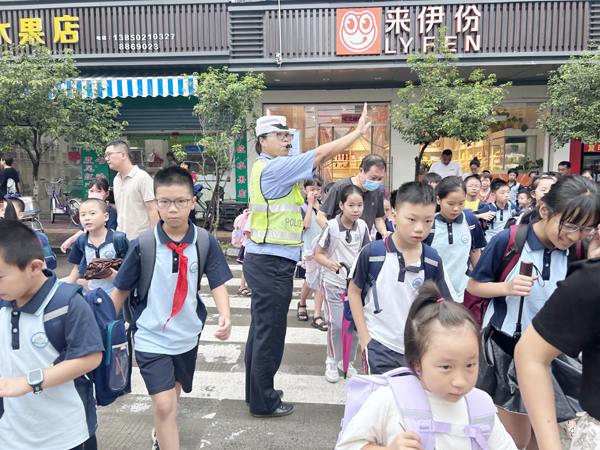 开学当日,所有护学岗人员提前到岗到位,清理校园周边主干道的违停车辆,引导接送学生车辆有序停放和来往车辆的快速通行。全面开启“全城校园周边巡导模式”,“哪里有堵情哪里有疏导”,加大学校周边道路的巡逻管控,强化通行效率,积极做好疏导保畅工作,筑牢师生文明安全出行防线。(郑斌斌)