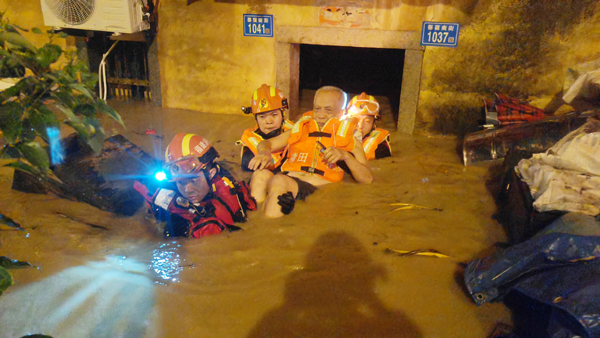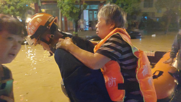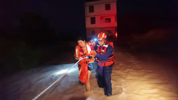 9月5日晚,仙游县枫亭镇蔡襄南街多处居民楼积水严重,有2名老人被困。消防救援人员到达现场后发现,积水最深处已至胸口,而且降雨持续,水位仍然不断上涨,被困人员已无法自行涉水脱困。因受灾地域雨势较大、漂浮物较多、救援现场街道狭小,舟艇无法进入,消防救援人员就地取材,利用已掉落的漂浮门板将2名老人依次转移至安全地带。