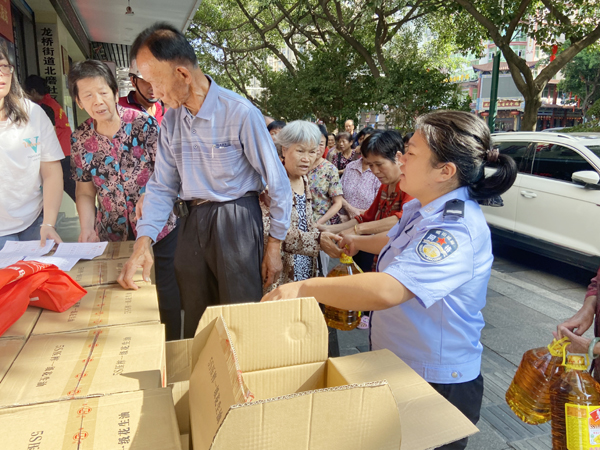 本报讯 为了弘扬中华民族敬老、爱老的优良传统,让辖区孤寡老人和困难群众感受到温暖的节日氛围。10月19日下午,龙桥街道北磨社区网格员协同居委会开展“浓情重阳,敬老佳节”慰问活动,为社区高龄老人送上慰问品和节日祝福。