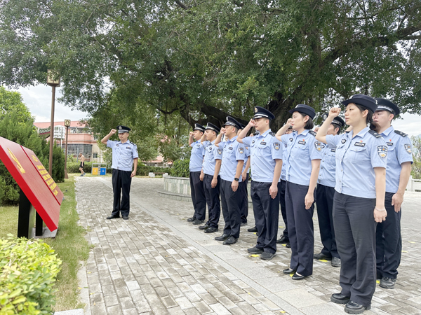 活动中,全体党员民警在革命英雄纪念碑前脱帽默哀,告慰烈士忠魂,寄托无限哀思,随后,组织集体重温入党誓词,民警们面对党旗进行了庄严宣誓,用铿锵有力的誓言表达继承革命先辈光荣传统、踏着烈士足迹奋勇向前的坚定决心。