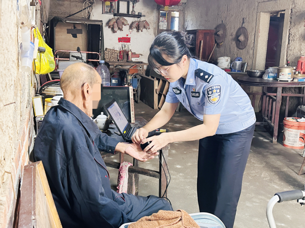 10月26日上午8时许,黄石派出所接到辖区横塘村群众求助称,其父亲户口迁移后因高龄行动不便,一直未到所换领身份证,现因身份证地址和户口本地址不同,影响其享受政府福利政策,家里人正为此事烦恼。获悉情况后,户籍民警携带相机、指纹采集设备等来到老人家中,为老人采集人像、指纹信息,顺利提交了办理身份证申请,获得老人家属及周边群众的一致称赞。