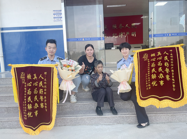 本报讯 “你和吴警官是我见过最好的警察。”10月24日下午,一名女子搀扶着一位老人,手捧鲜花、拿着锦旗专程送到东峤派出所户籍民警章曦尹和社区民警吴宇强手中。